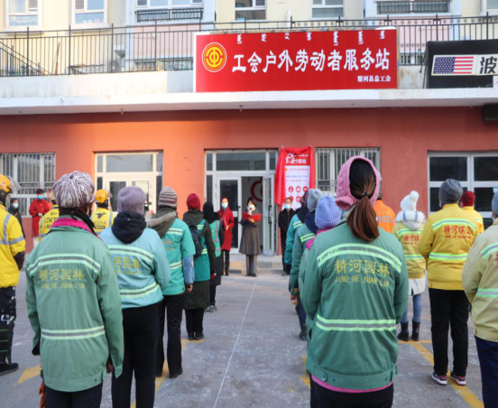 11月19日,精河县总工会举行“户外劳动者服务站”揭牌仪式,参加此次活动的有园林工人、环卫工人、美团外卖等户外劳动者代表总计30人。