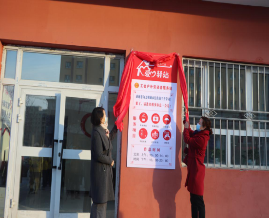 随着红布的掀开,标志着“户外劳动者服务站”今天开始正式成立了。