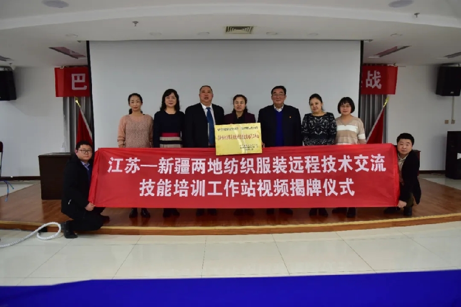 近日,江苏、新疆两地工会为纺织服装行业远程技术交流技能培训工作站揭牌,仪式以视频形式在巴音郭楞蒙古自治州库尔勒市举行。这标志着两地远程技术交流培训项目正式落地,两地产业工会在探索援疆工作机制方面取得新进展。