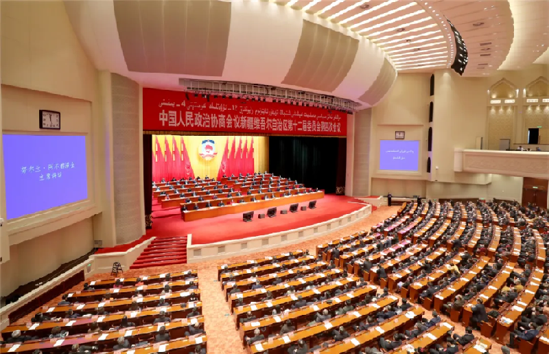 2月4日,自治区政协十二届四次会议在新疆人民会堂闭幕。图为会议现场。
