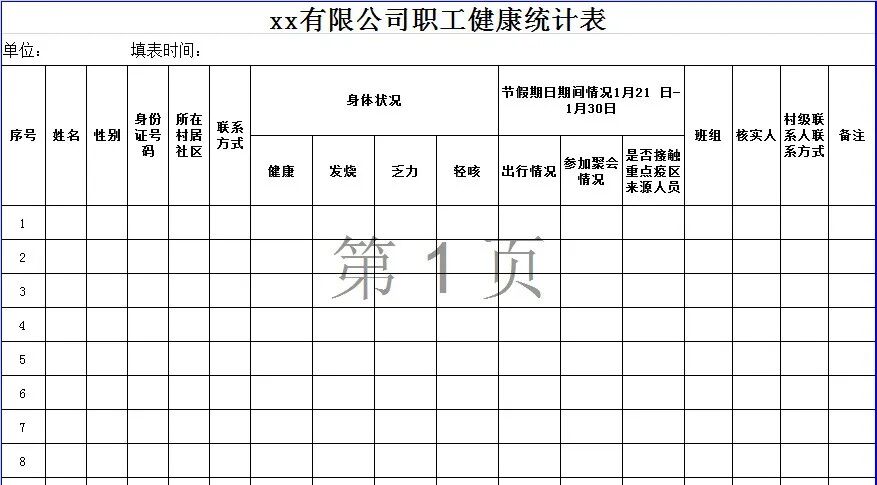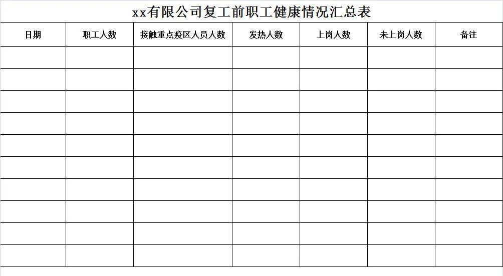 复工前职工健康统计表