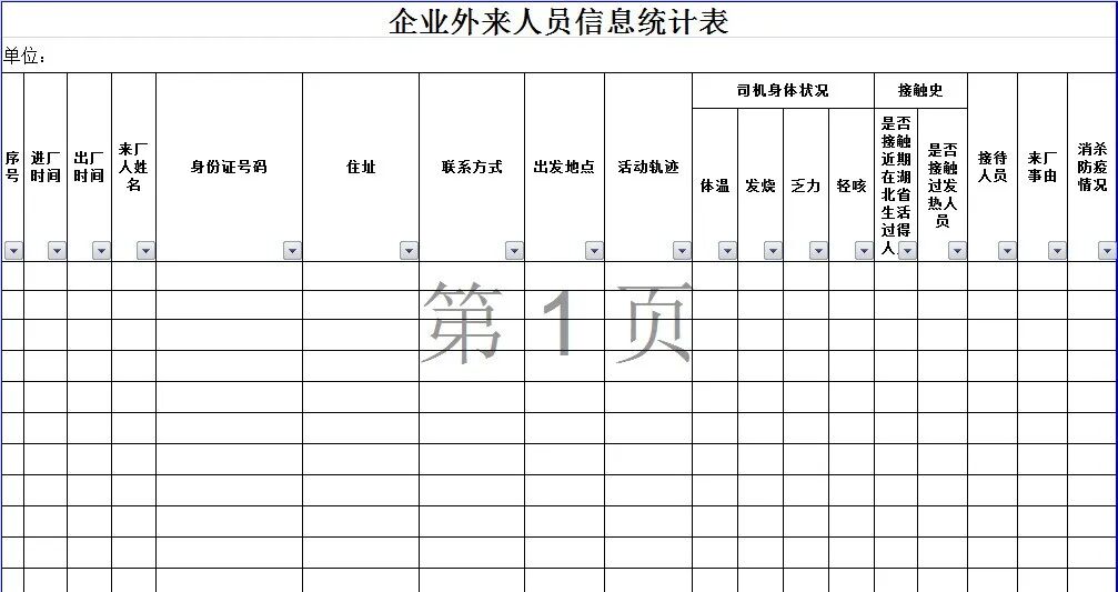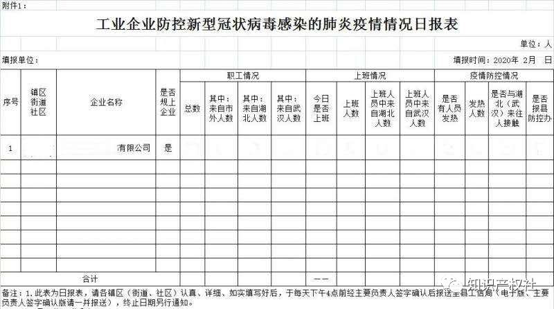 企业疫情防控日报表