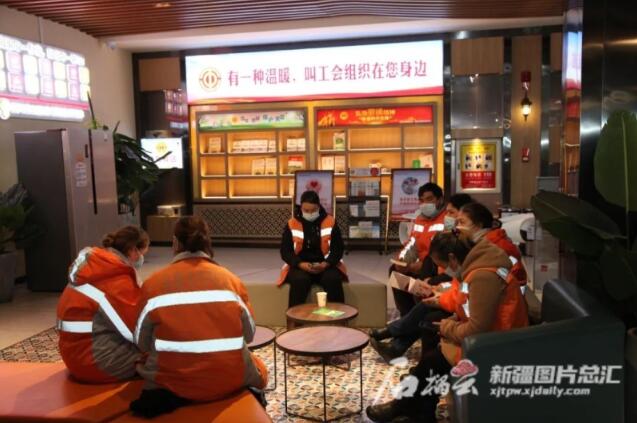 2022年12月20日,乌鲁木齐县新疆丝路南山旅游文化有限公司工会户外劳动者服务站点内,电视机、储物柜、电暖器、冰箱、微波炉等一应俱全。自治区总工会提供