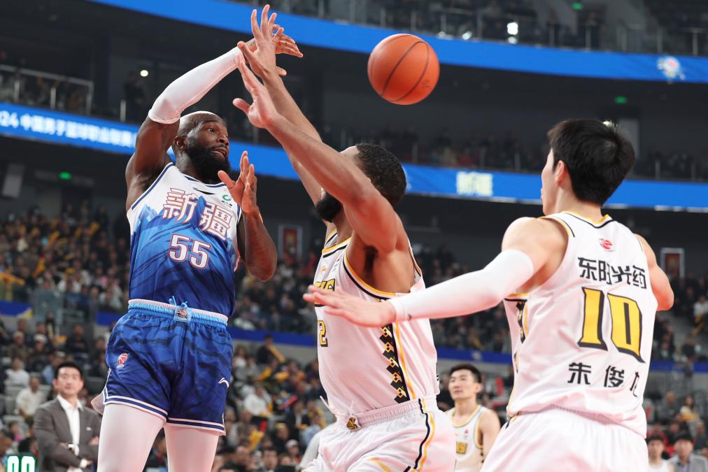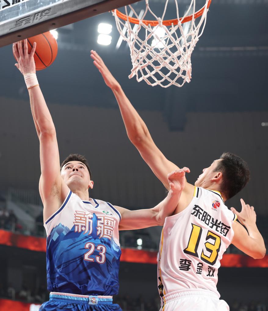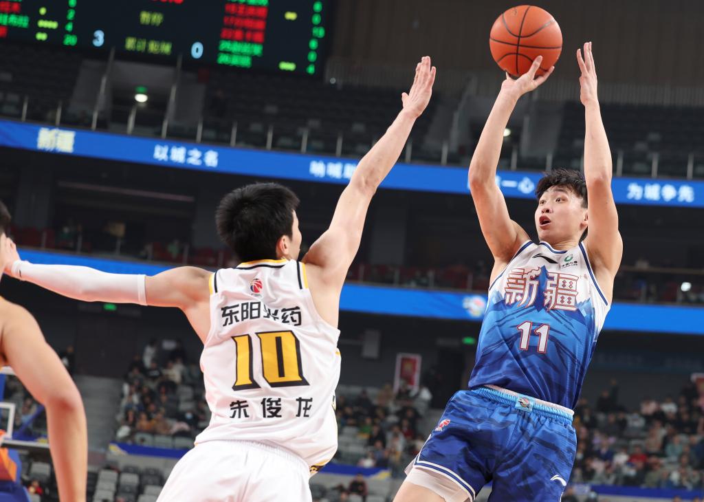 当日,在2023-2024赛季中国男子篮球职业联赛(CBA)常规赛第22轮比赛中,新疆伊力特队主场以96比86战胜浙江东阳光药队。
