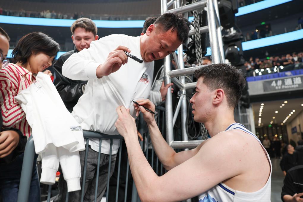 12月27日,新疆伊力特队球员阿不都沙拉木赛后为球迷签名。