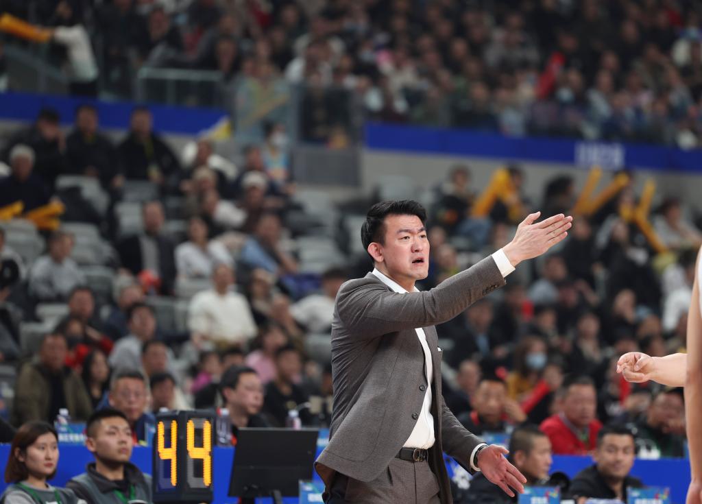 12月27日,浙江东阳光药队主教练王博在场边指挥。